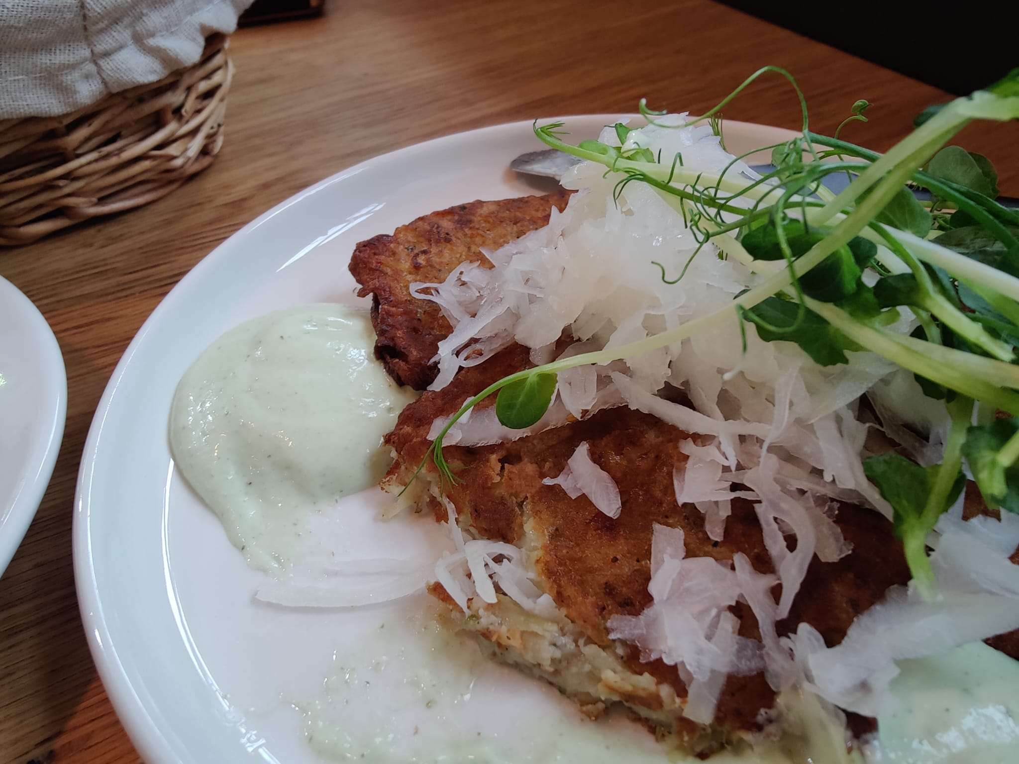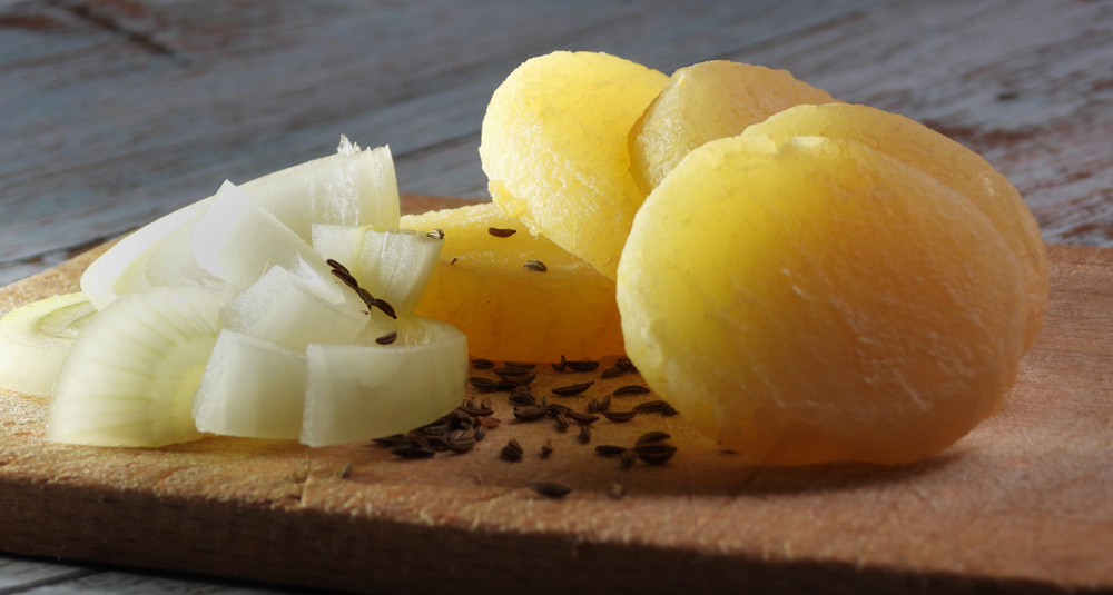 - Kartoffeln reiben, eine Zwiebel fein reiben. Beides durch ein Passiertuch auspressen. Mit ein wenig Mehl und einem Ei vermischen. Quargel in feine Stücke schneiden oder raspeln und mit fein geschnittene Frühlingszwiebeln óder in Würfel gepresstem Knoblauch untermischen. Sanft in Butterschmalz braten und mit Salat servieren.