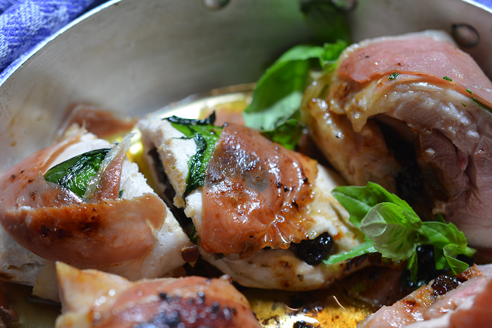 hühnerbrust gefüllt mit cranberries in parmaschinken