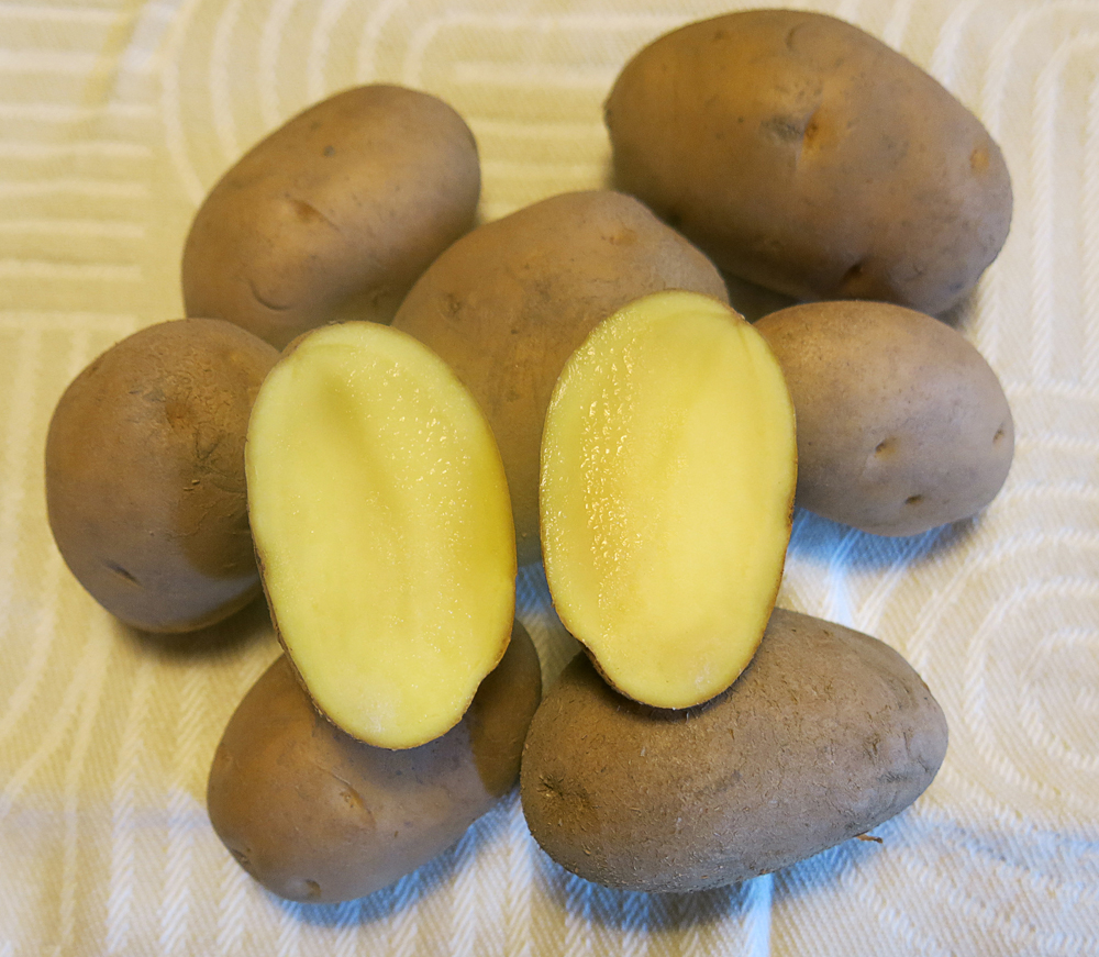 Ja, warum? „Nichts gegen Sie, aber Ihre Kartoffeln sind nicht so, dass ich sie essen möchte.“  „Wieso?“  „Sie haben immer so unbekannte Sorten, quasi Saisonware“. „Nein, wir haben drei Sorten: mehligkochend, festkochend und überwiegend festkochend!“ Die einzelnen Kartoffelsorten ignorierte er vollkommen. So kamen wir auf die großen Agrarkonzernen zu sprechen, die das Saatgut dominieren und regelmäßig gegen neue Sorten austauschen, auch wenn man bei manchen Sorten nichts verbessern kann. Dann strahlte er mich an und sagte: „Wir haben auch regionale Kartoffeln!“ „Kenne ich, aus Duchtlingen. Ich war dort einmal beim jährlichen Kartoffelfest. Da hatte das Landwirtschaftsamt ein Informationszelt und die Dame vom Amt sagte mir auf meine Frage: „Was haben Sie hier für Sorten?“ dasselbe wie Sie. Ich habe dann darauf hingewiesen, dass Kartoffeln auch einen Vornamen haben, z.B. „Linda“ oder „Annabell“. Sie wurde unwirsch, aber das passiert, wenn man auf dem Landwirtschaftsamt arbeitet und überfordert ist. Um dem abzuhelfen, werde ich ab jetzt in loser Reihe Kartoffelsorten vorstellen. Dazu gibt es natürlich ein Rezept, das sich für diese Sorte besonders gut eignet. Und einiges Lehrreiches: z.B.  wo sie angebaut wird und manche andere Informationen, die aufschlussreich sein können.